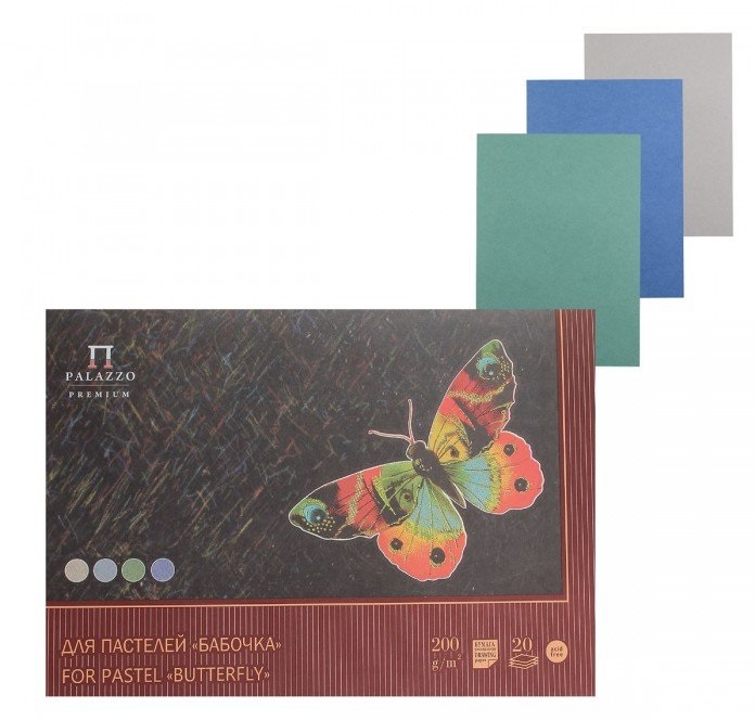 Папка для пастели А3, 20 листов "Бабочка" 200 г/м2, 4 цвета, 297*420 мм 126478