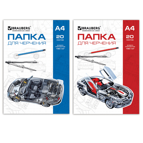 Папка для черчения А4, 20 листов, 297*210 мм, без рамки, 160г/м2, 2 вида, Brauberg