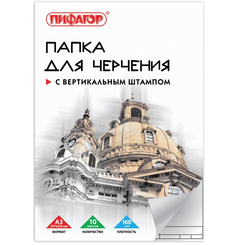 Папка для черчения 10 листов А3 с вертикальным штампом "Пифагор"