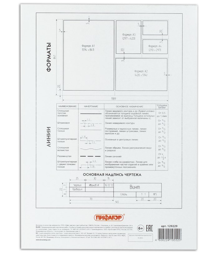 Папка для черчения с красочной обложкой. На обратной стороне обложки содержит справочную информацию для чертежника.