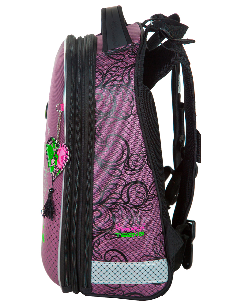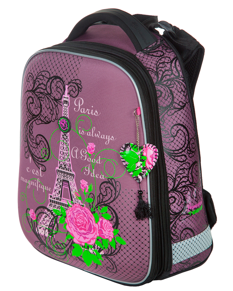 - два больших отделения на молниях. В основном, самом большом отделении расположены жесткие перемычки- вставки, для комфортного размещения тетрадей или учебников. В переднем отделении предусмотрен органайзер с карманом для мобильного телефона, сетчатым карманом для мелочей, отделениями для ручек и карандашей, подвеской для ключей;