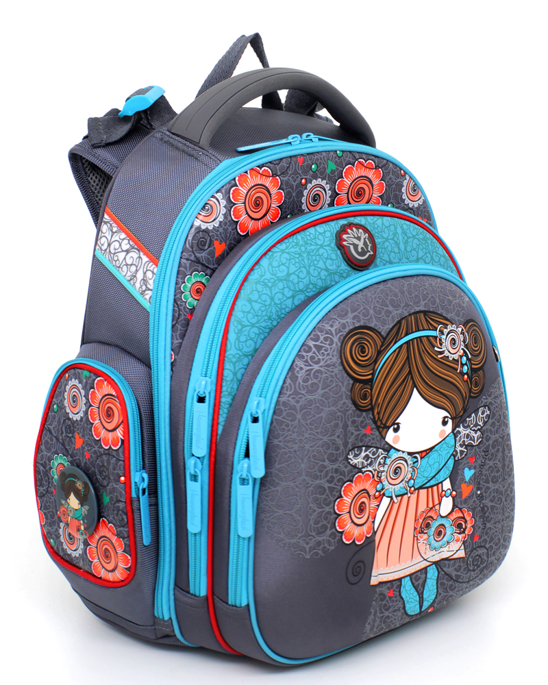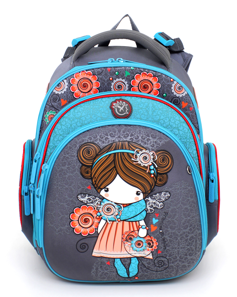 - три больших отделения на молниях. В основном, самом большом отделении расположены жесткие перемычки- вставки, для комфортного размещения тетрадей или учебников. В переднем отделении предусмотрен органайзер с карманом для мобильного телефона, сетчатым карманом для мелочей, отделениями для ручек и карандашей, подвеской для ключей;