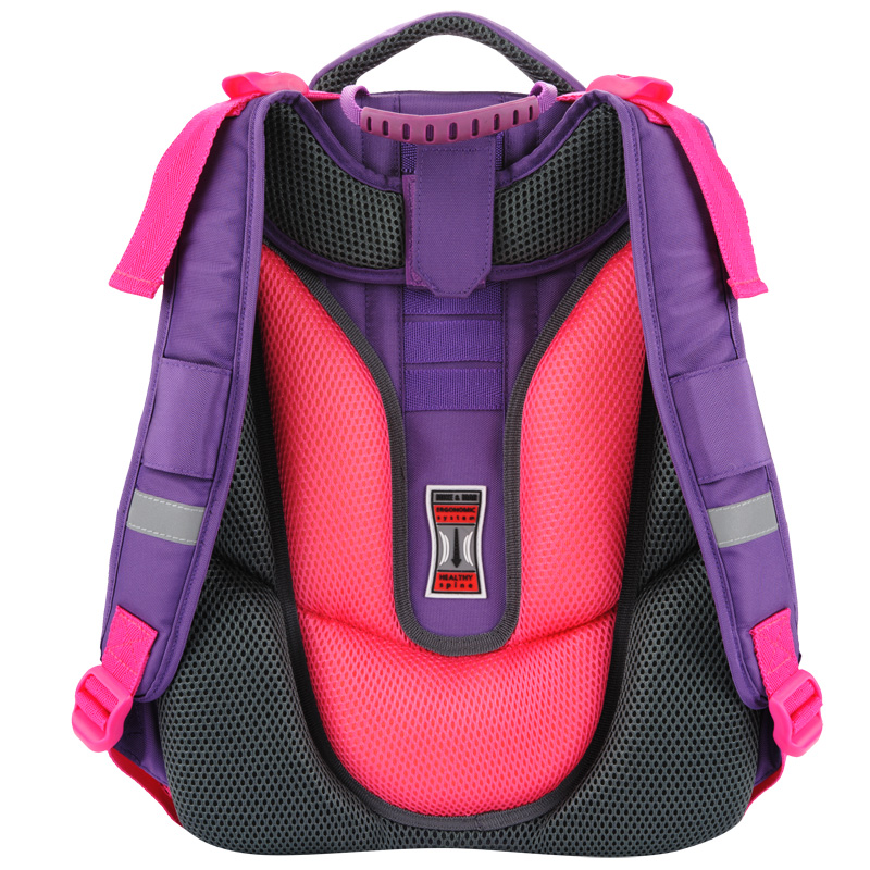 - Эргономичная спинка ранца, обшитая воздухопроницаемым материалом, выполнена с учетом анатомии позвоночника ребенка, обеспечивая плотное прилегание к спине и как следствие, снижение нагрузки на позвоночник и формирование осанки. Рельеф и воздухопроницаемый сетчатый материал эргономичной спинки ранца обеспечивает прекрасную вентиляцию.