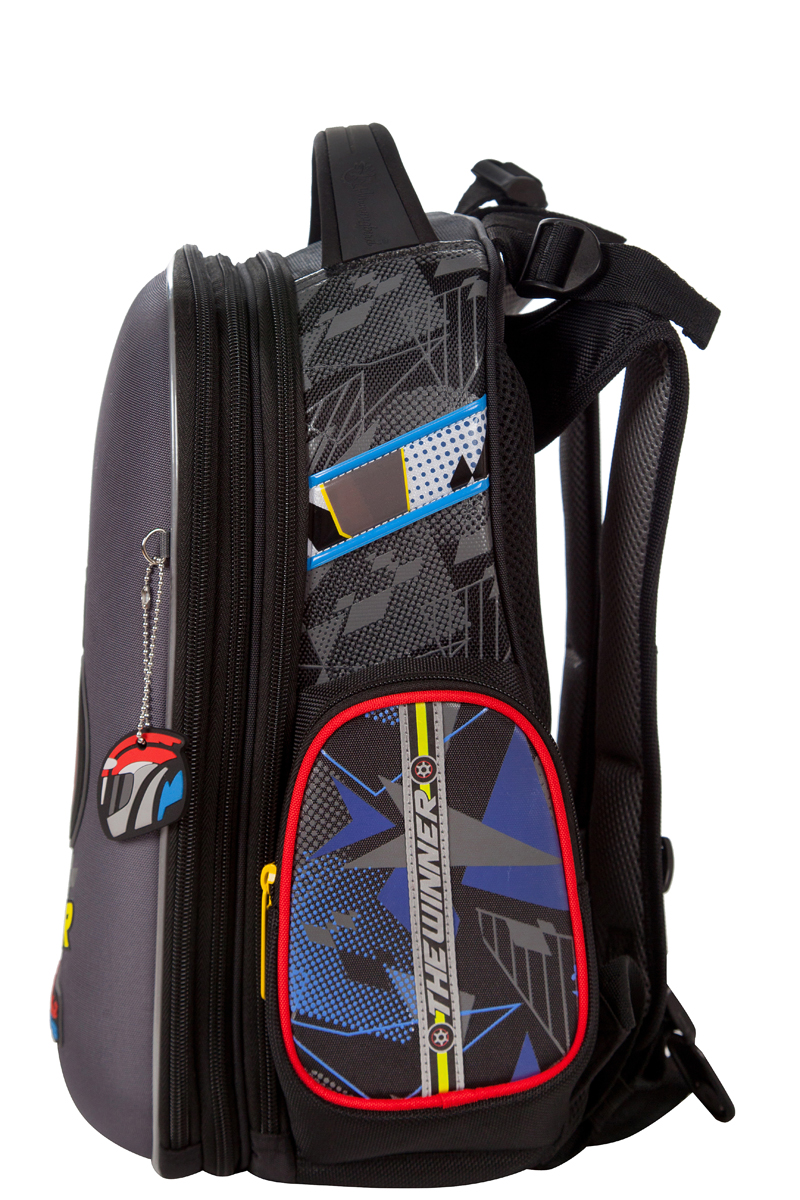 - два больших отделения на молниях. В основном, самом большом отделении расположены жесткие перемычки- вставки, для комфортного размещения тетрадей или учебников. В переднем отделении предусмотрен органайзер с карманом для мобильного телефона, сетчатым карманом для мелочей, отделениями для ручек и карандашей, подвеской для ключей;