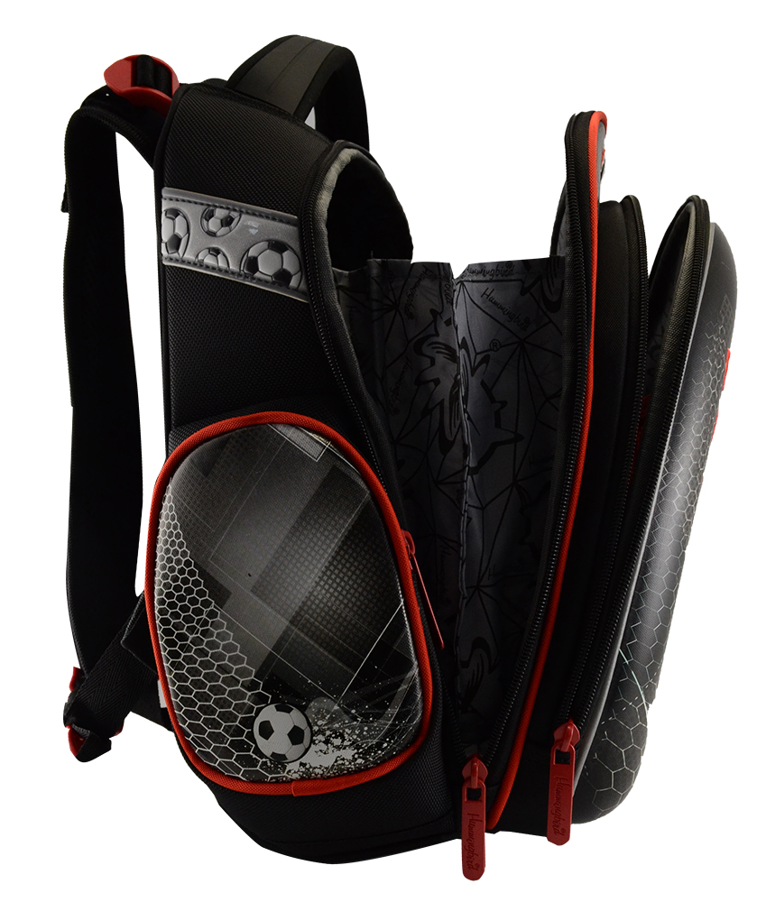 - два больших отделения на молниях. В основном, самом большом отделении расположены жесткие перемычки- вставки, для комфортного размещения тетрадей или учебников. В переднем отделении предусмотрен органайзер с карманом для мобильного телефона, сетчатым карманом для мелочей, отделениями для ручек и карандашей, подвеской для ключей;