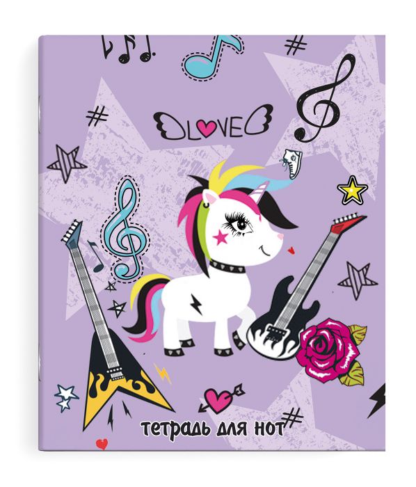 Тетрадь для нот 24 листа, А5 "Рок и единорог"