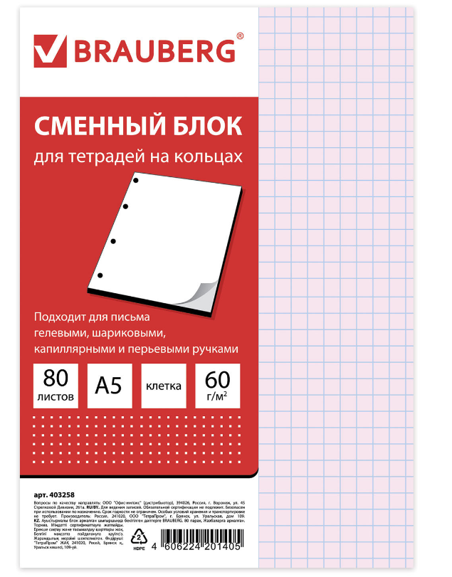 Сменный блок подходит для всех тетрадей на кольцах формата А5.