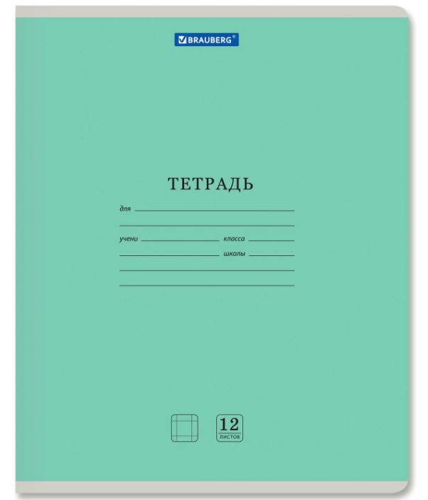 Тетрадь 12 листов, крупная клетка, BRAUBERG "КЛАССИКА" NEW , обложка картон, зеленая, 105689
