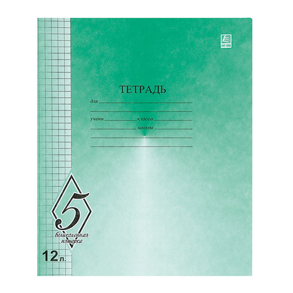 Тетрадь школьная ученическая 12 листов в клетку, в зеленой обложке. Внутренний блок с четко прорисованными полями и клеткой соответствуют высокому качеству полиграфии.
