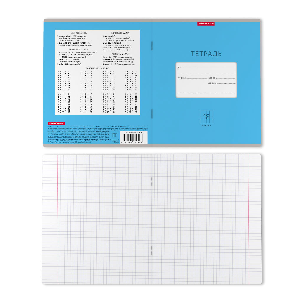 Тетрадь 18 листов клетка А5 ErichKrause "Классика" Bright голубая