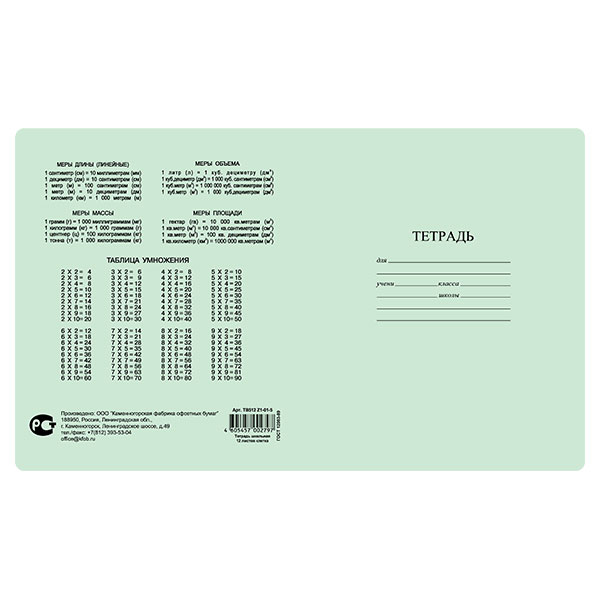 Тетрадь КФОБ 18 листов, таблица умножения, блок-клетка