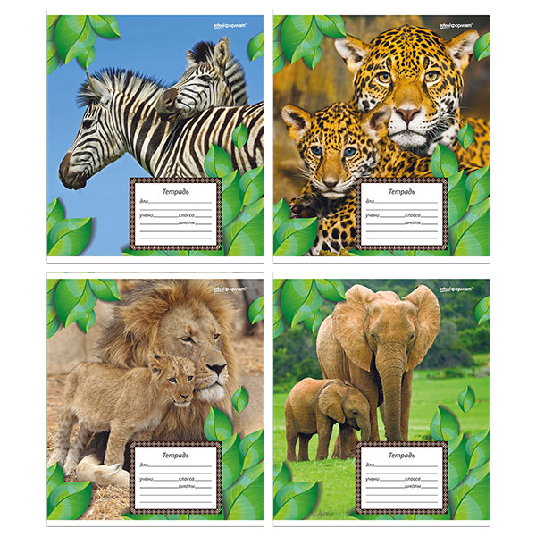 Тетрадь 18 листов, клетка, "Дикие животные", мелованный картон, УФ-лак ShoolФормат, 154008 о.мн