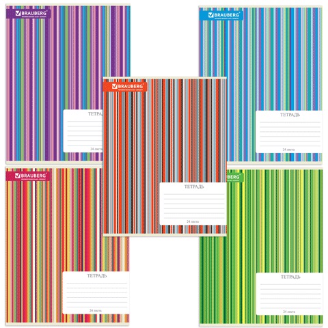 Тетрадь BRAUBERG "Полоски" (5 видов) 24 листа, блок-клетка