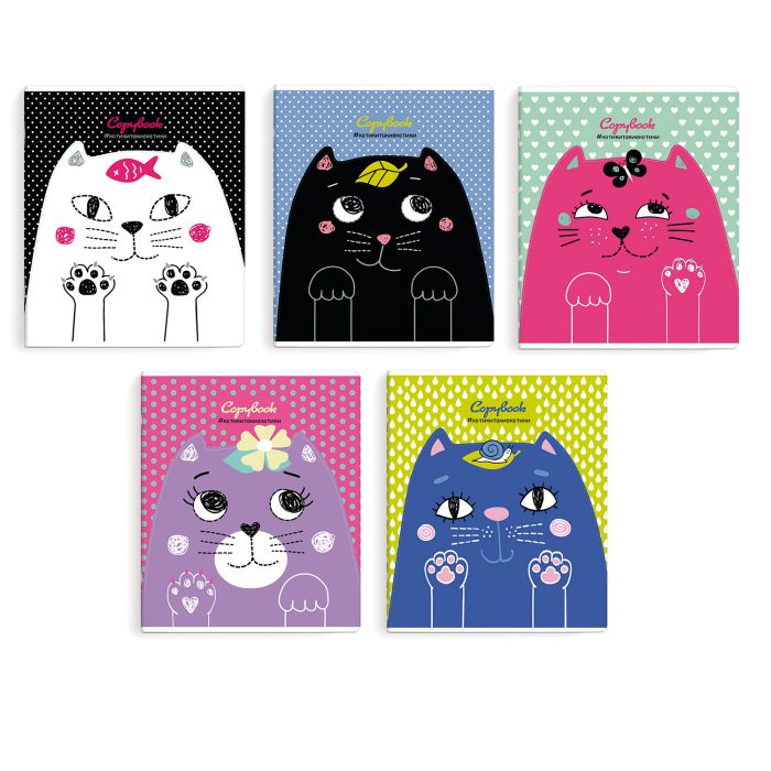 Тетрадь 48 листов А5 клетка "Котики и горошек" сплошной твин уф лак о.мн