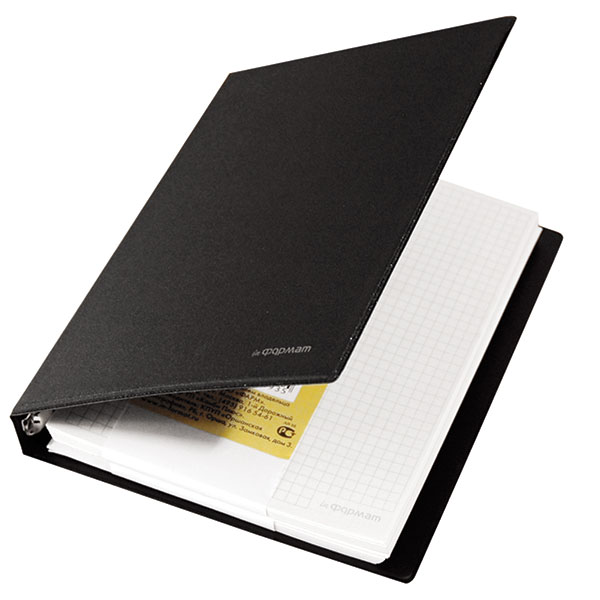 Классическая тетрадь со сменным блоком на кольцах, с обложками черного и белого цветов.