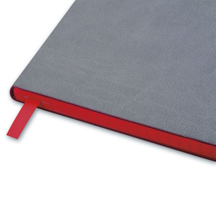 Тетрадь формата А4 в интегрально мягком переплете с тиснением матовой фольгой и функциональной закладкой-ляссе.
