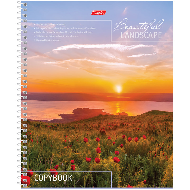 Тетрадь 100 листов, клетка HATBER "ОЧАРОВАНИЕ ЗАКАТА" спираль, карман