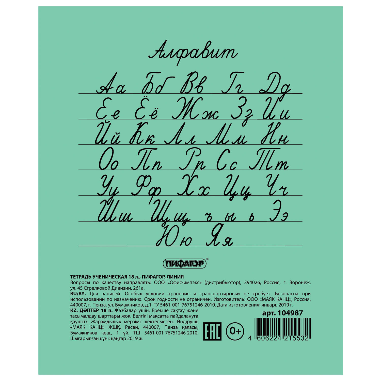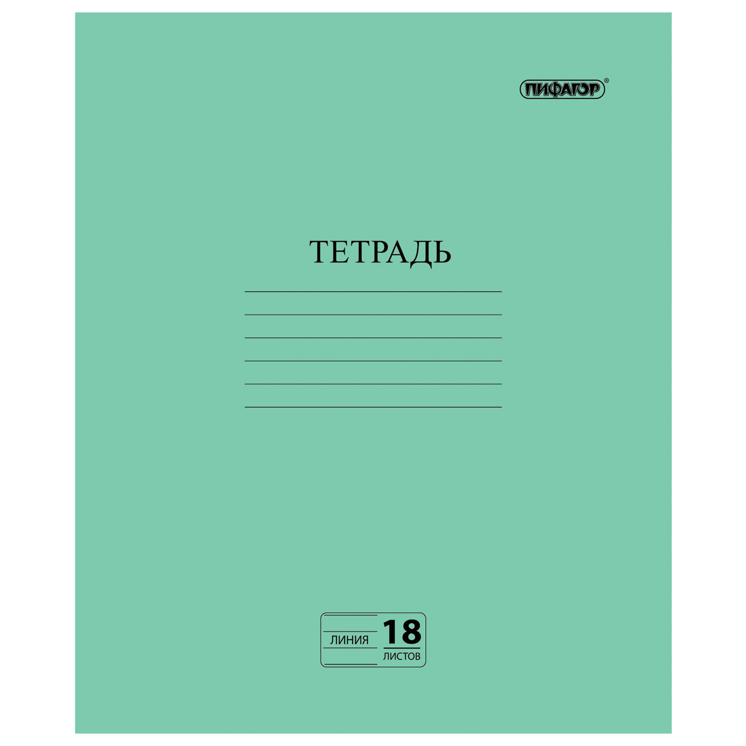 Тетрадь 18 листов линия ЗЕЛЁНАЯ обложка ЭКОНОМ поля ПИФАГОР 104987