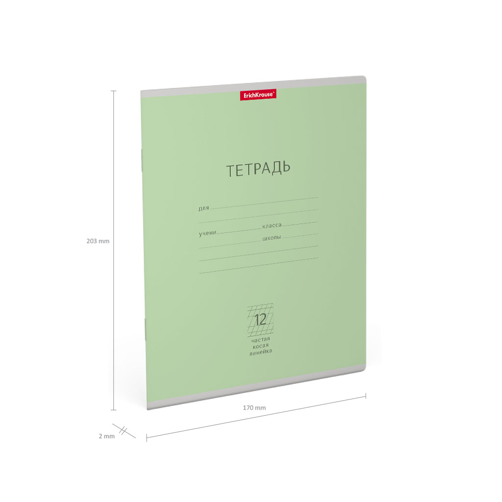 Тетрадь 12 листов частая косая линия А5 ErichKrause "Классика" зеленая