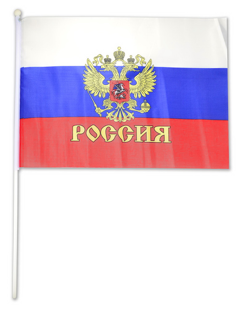 Сувенирный флаг России с пластиковым древком.