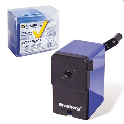 Точилка механическая 1 отверстие BRAUBERG RoboBlue, черно-синяя