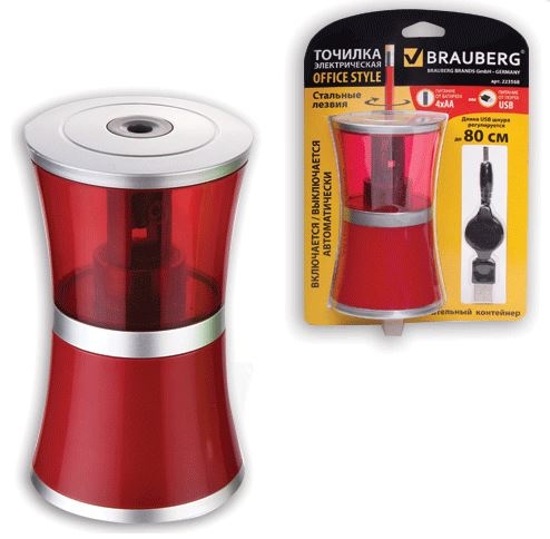 Точилка электрическая BRAUBERG "Office style" питание от USB/батареек АА