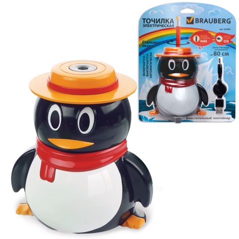 Точилка электрическая BRAUBERG "Пингвин", питание от USB/4 батареек АА