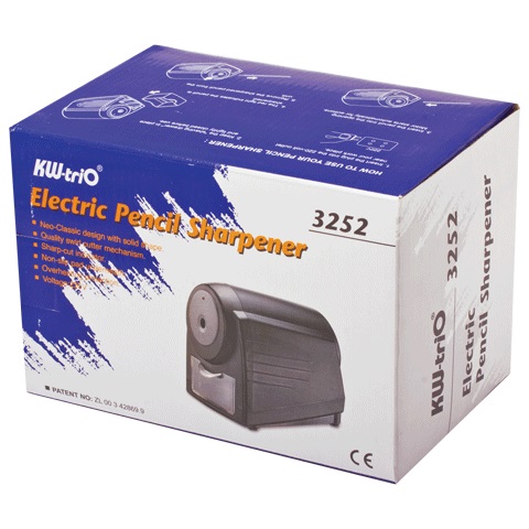 Настольная электрическая точилка KW-trio для чернографитных и цветных карандашей. Отличается высоким качеством работы, быстротой и долговечностью механизма.