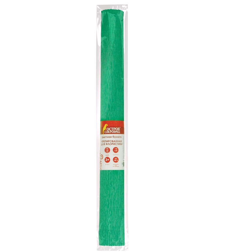 Бумага крепированная для творчества и флористики, 110 г/м2, зеленая, 50*250 см, ОСТРОВ СОКРОВИЩ, 129151