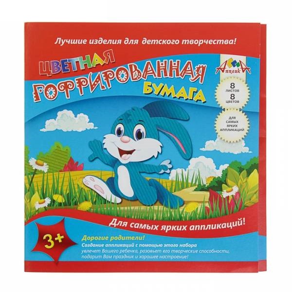 Цветная бумага гофрированная 8 листов 8 цветов Апплика С1792 126705