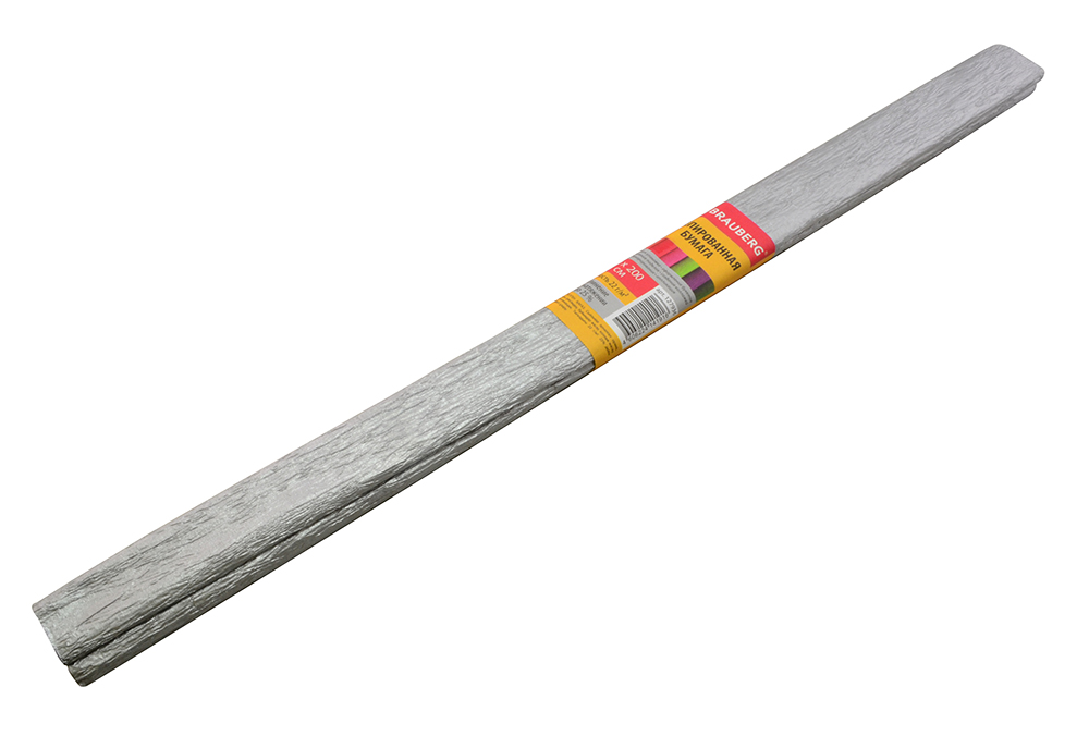 Бумага цветная крепированная 50*200 см, металлик, серебряная, растяжение до 25%, 22 г/кв.м