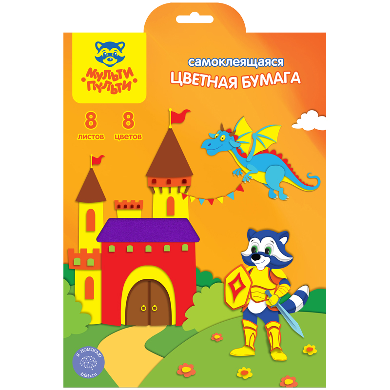Бумага цветная самоклеящаяся 8 листов 8 цветов "Мульти-Пульти" А4 252589