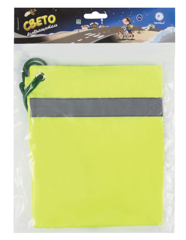 Сумка для обуви со световозвращающей полосой изготавливается из специальной водоотталкивающей ткани. Широкая светоотражающая полоса нашивается по всей окружности сумки, что делает видимым ребенка со всех сторон.