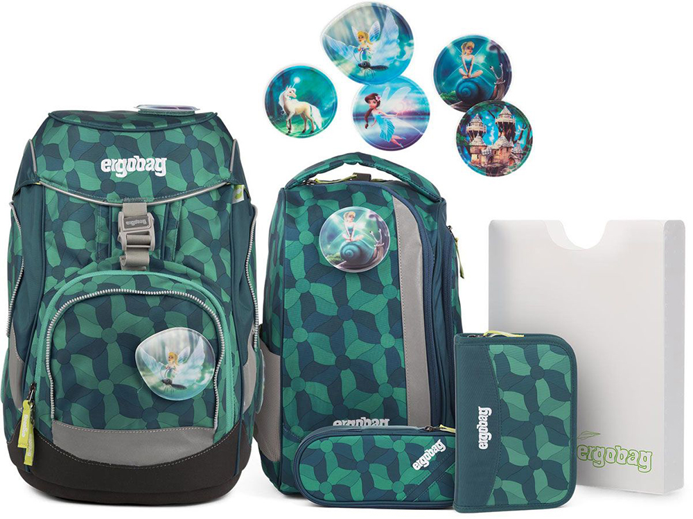 Рюкзак украшен стикерами, которые крепятся на липучках. К рюкзаку можно легко присоединить небольшой рюкзак для спортивной формы. В комплекте два пенала на молнии и пластиковая папка. В пенале с наполнением есть цветные карандаши, ластик, точилка и линейка. Рюкзак предназначен на рост ребенка от 110 до 150 см.