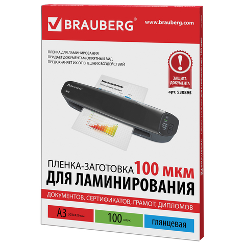 Пленка-заготовка для ламинирования BRAUBERG A3 комплект 100 штук 100 мкм