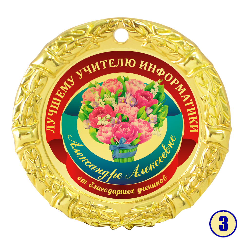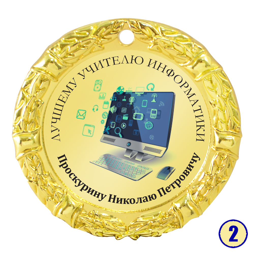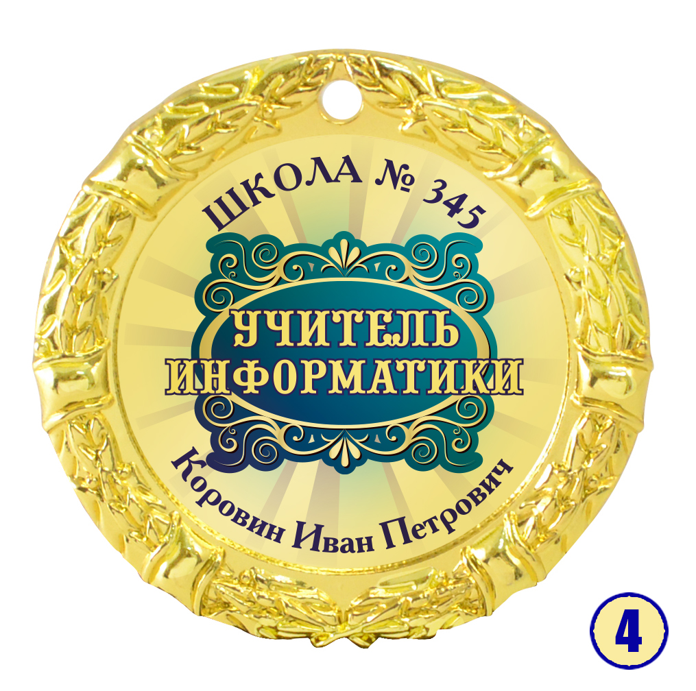 Медаль изготовлена из металла с золотым напылением, с гравировкой на лицевой - цветная гравировка на выбор.