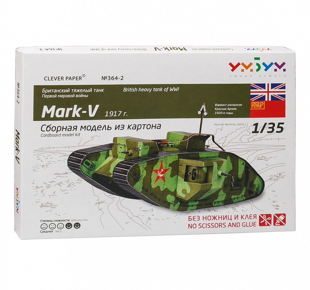 Набор для творчества. Сборная модель из картона "Танк Mark-V (раскраска русской армии)" 364-2