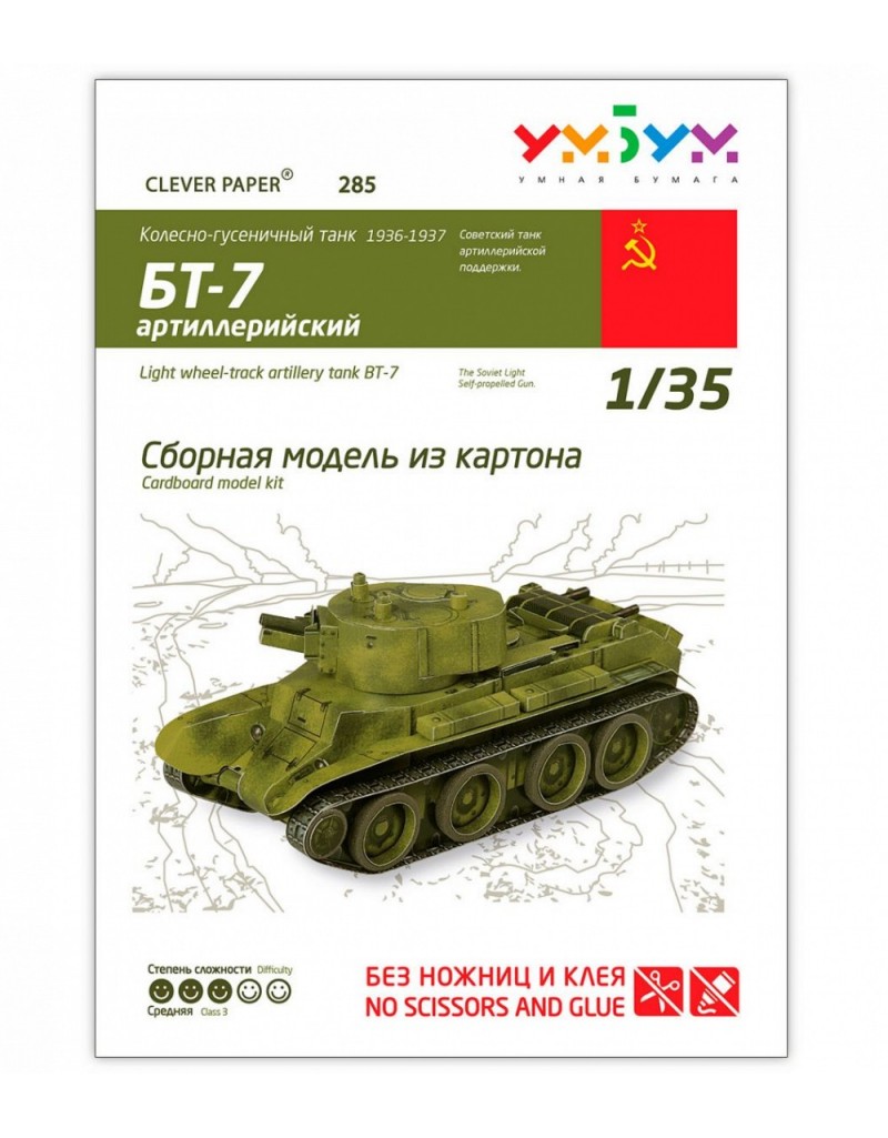Набор для творчества. Сборная модель из картона "Танк БТ-7" артиллерийский 285