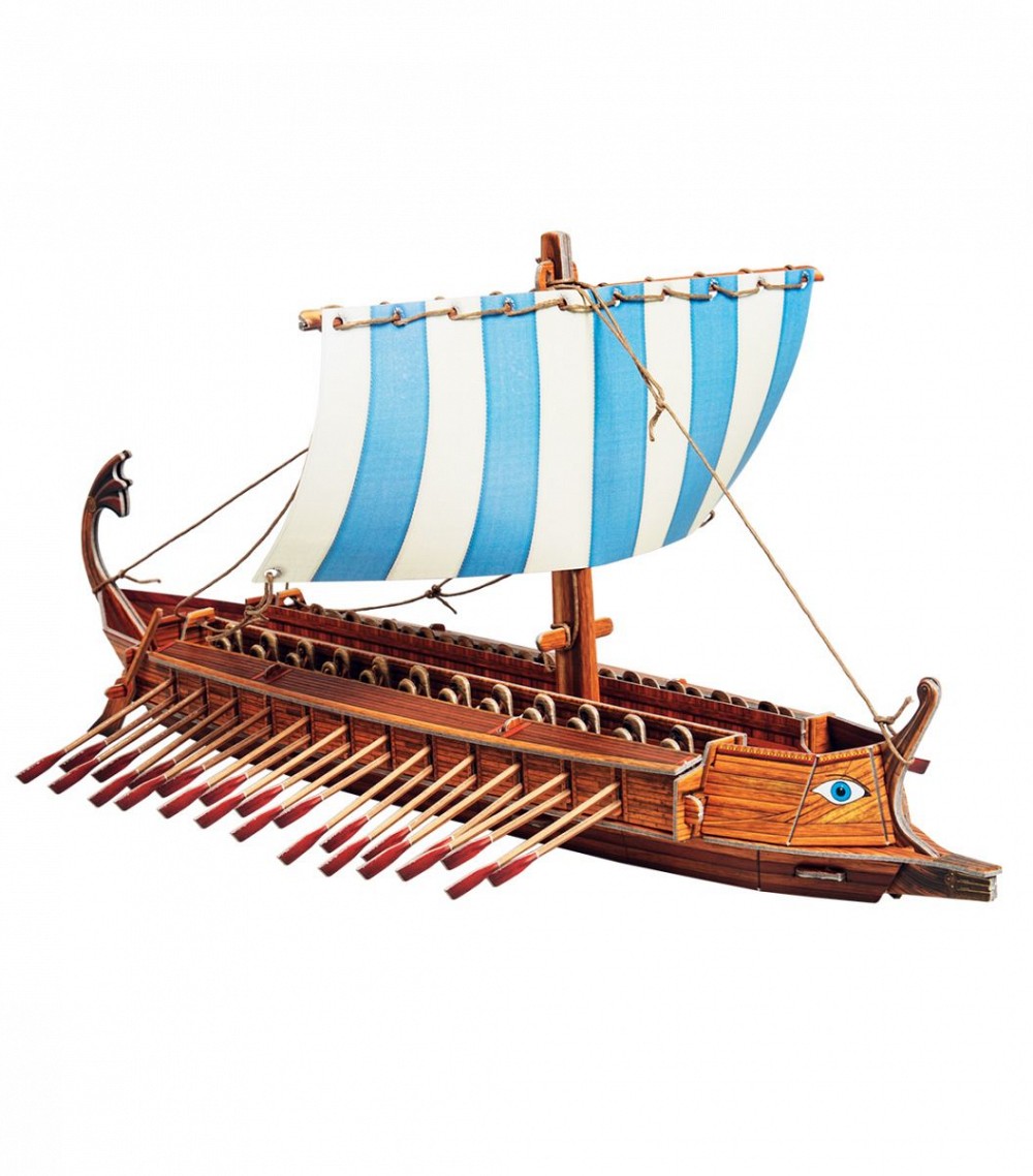 Почему греческая? Потому, что именно греки первыми начали применять этот тип боевого корабля, а уже вслед за ними бирему стали использовать римляне. В те времена весла и их число были очень важны для корабля, так как парус в форме прямоугольника позволяет двигаться только в направлении ветра. До появления биремы весла, как и гребцы, располагались на кораблях в один ряд. Если нужно было построить быстрый корабль, его корпус при постройке удлиняли, чтобы посадить дополнительных гребцов. Но это не могло продолжаться бесконечно. Греческая бирема стала первым кораблем с расположением весел и гребцов в два яруса. Греки использовали таран в носовой части для стремительной атаки противника.