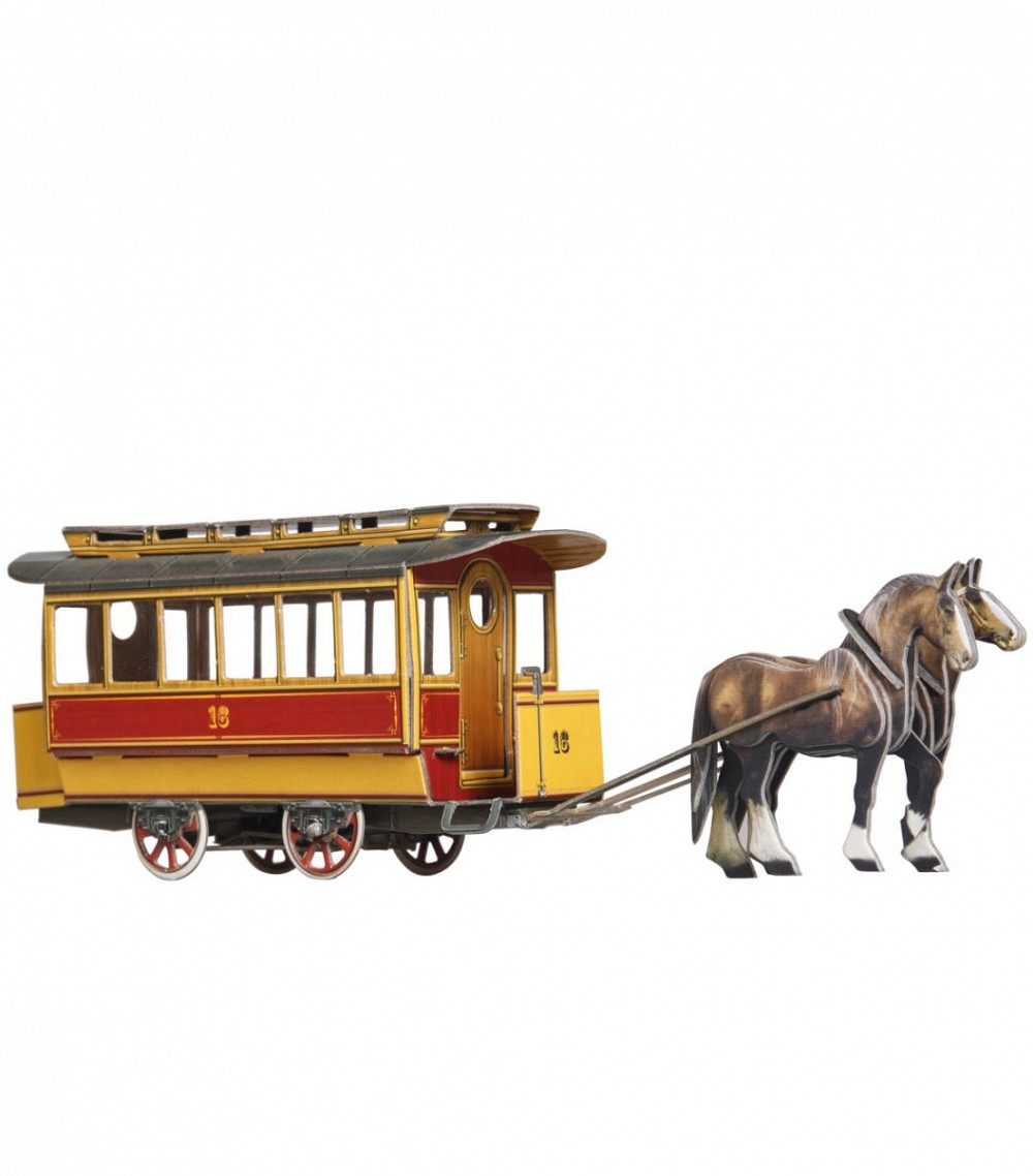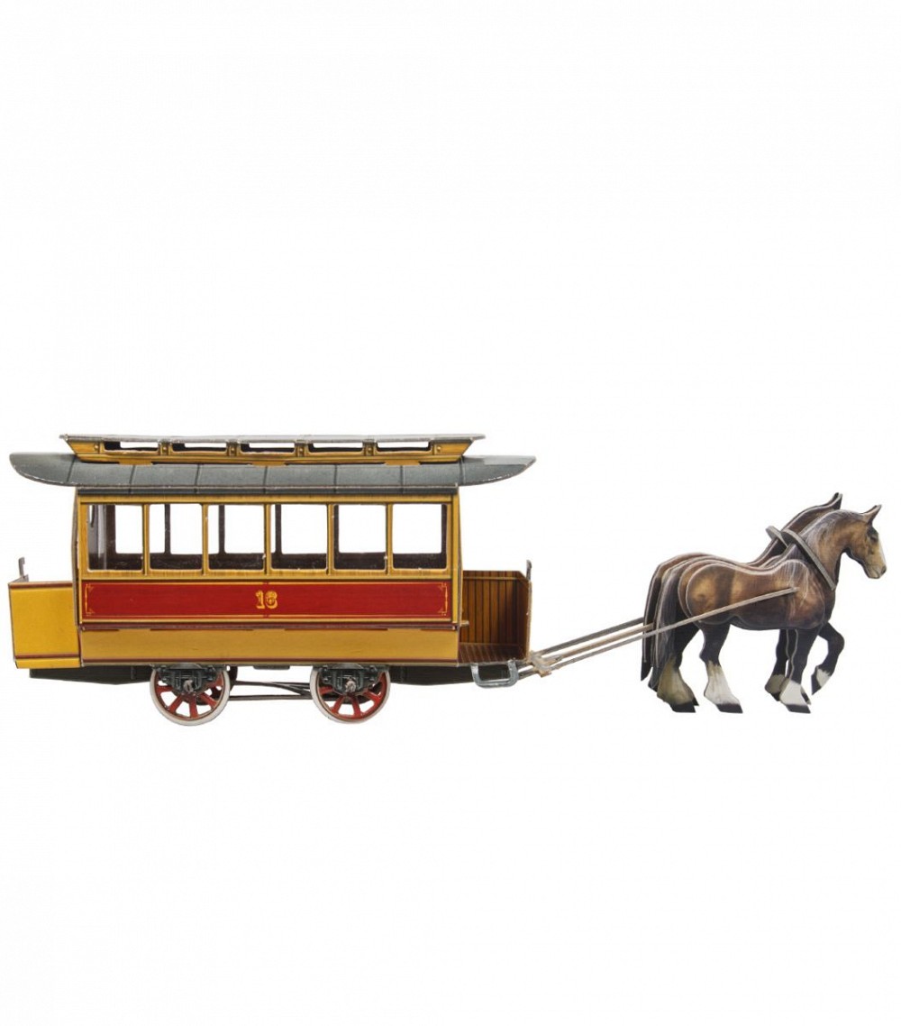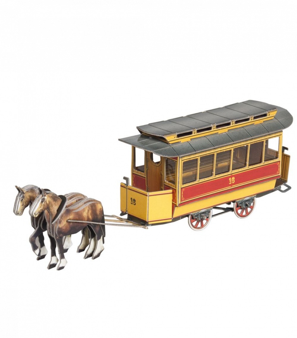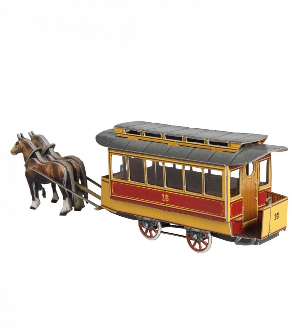 Перед вами модель конки в популярном автомобильном масштабе 1 к 43. Модель предназначена для стендовой экспозиции, лошади стоят, колеса вагона не вращаются.