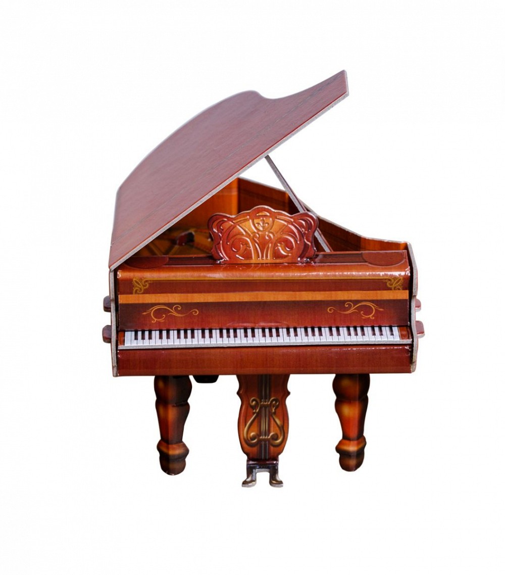 Выпускается в двух вариантах - в светлом и темном исполнении. Вне зависимости от исполнения, рояль очень привлекателен внешне, крышка резонатора в открытом положении удерживается стойкой, которую можно повернуть и закрыть крышку. Маленькая крышка над клавиатурой и резная съемная подставка для нот добавляют нашему роялю сходства с настоящим музыкальным инструментом. В набор входит банкетка для пианиста. Детали сборной игрушки соединяются друг с другом без клея. Набор отличается несложной сборкой. Его можно рекомендовать детям, которые имеют небольшой опыт сборки наших игрушек. Рояль можно использовать для игры. Детали выполнены из прочного картона, но при неосторожной игре или сильном надавливании на крышку открытого рояля тонкая стойка крышки может сломаться.