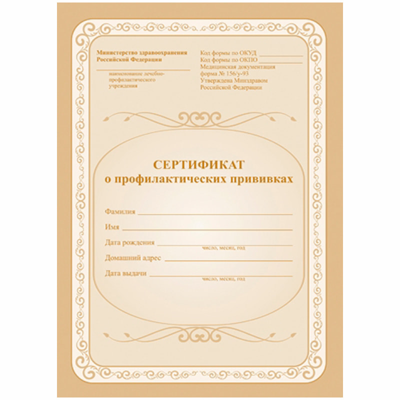 Сертификат о профилактических прививках 6 листов, A5, на скрепке, блок офсет