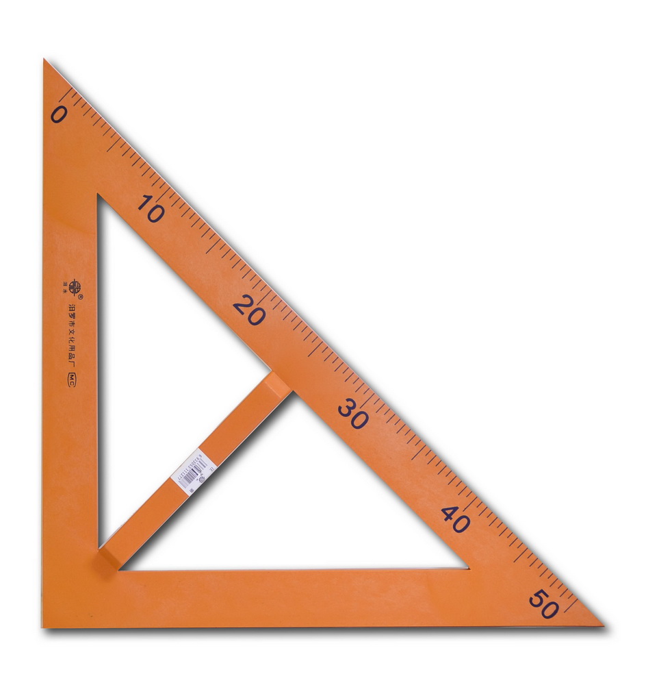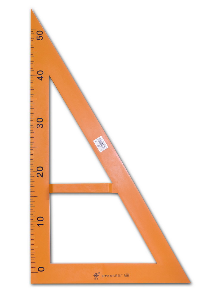 Набор из двух классных треугольников с углами в 45/45/90 и 30/60/90 градусов соответственно. На треугольниках есть линейка с разметкой на 50 сантиметров.