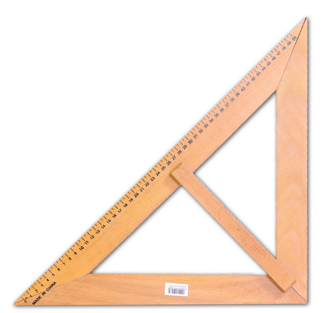 Деревянный классный треугольник с углами 45, 45 и 90 градусов.