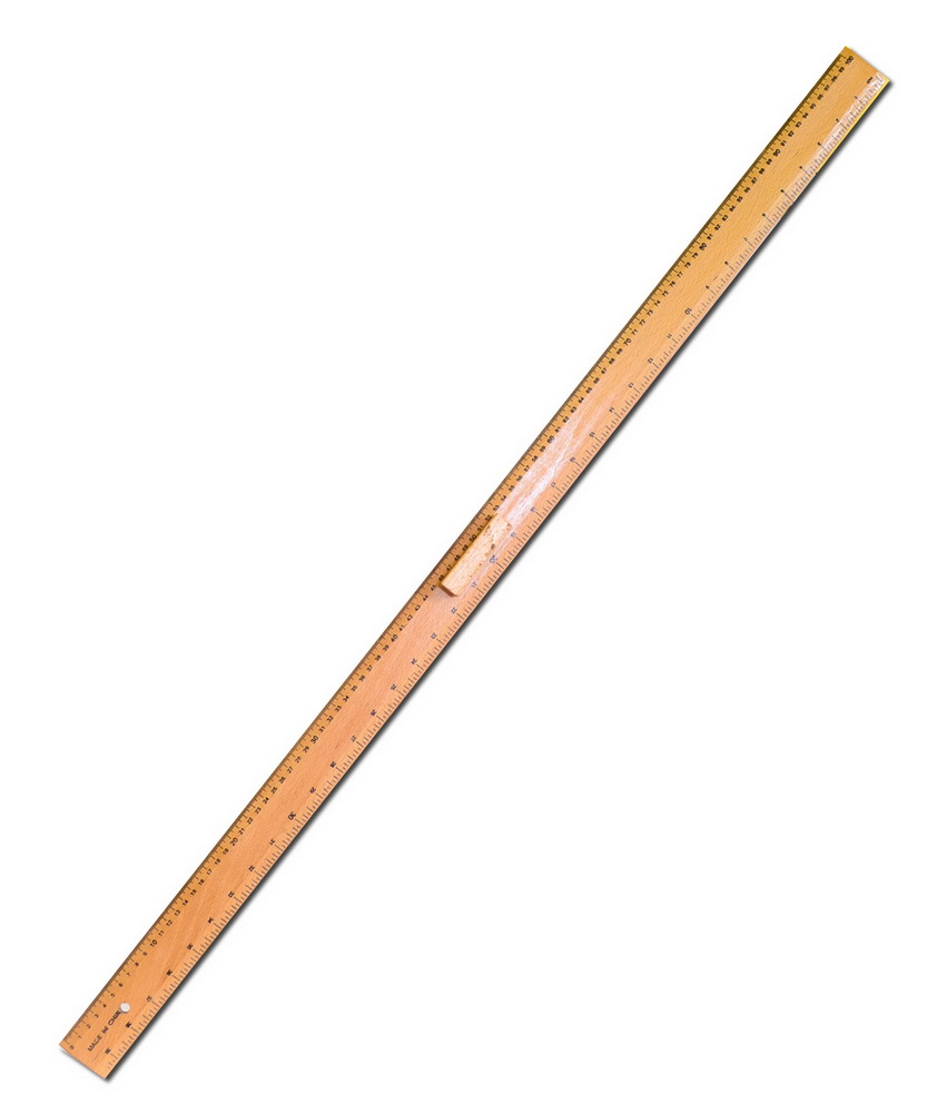 Деревянная классная линейка с держателем. На линейке есть разметки в сантиметрах и дюймах.