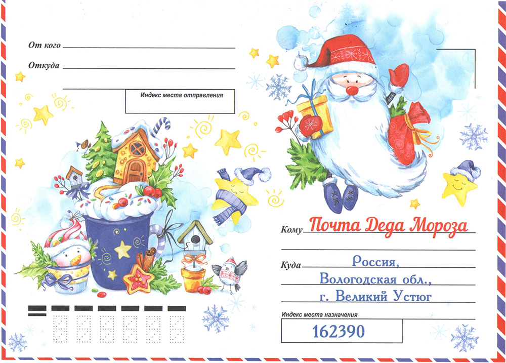 - В наборе идет конверт с обратным адресом, Вам нужно написать только адрес получателя.