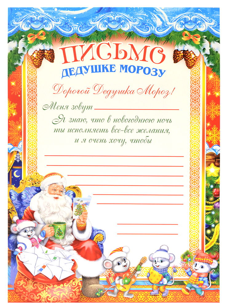Письмо А4 Дедушке Морозу + конверт, 10 штук 013.724