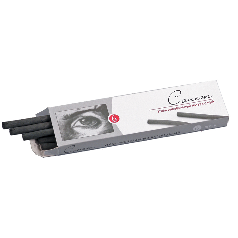 Уголь для рисования натуральный ЗХК "Сонет", 170мм, диаметр-6/8 мм, набор 6 шт