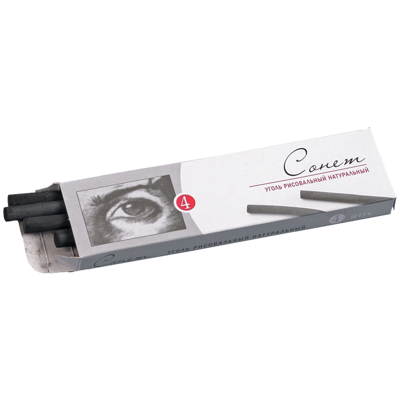Уголь для рисования натуральный ЗХК "Сонет", набор 4 штуки, 170мм, диаметр-8/10 мм
