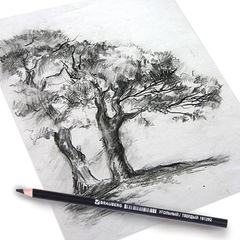 Карандаш угольный, черный "Art Hard" круглый, заточенный Brauberg